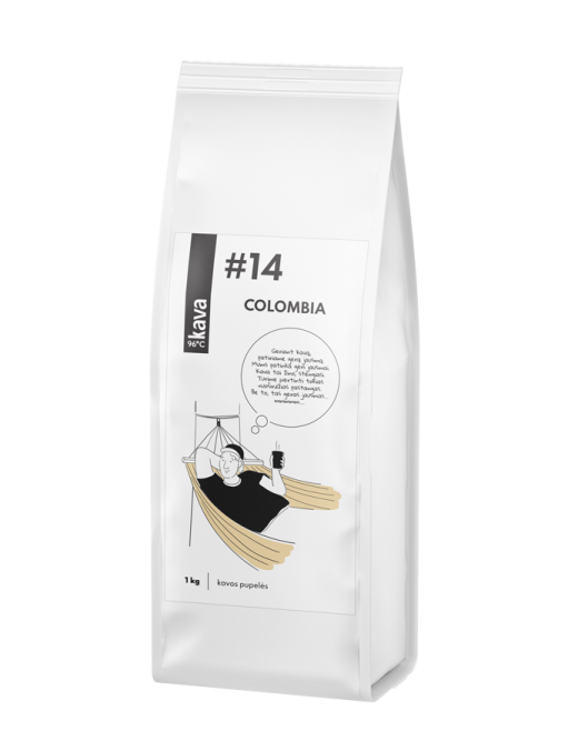 Sastāvdaļas: grauzdētas Colombia Supremo 100% Arabica kafijas pupiņas