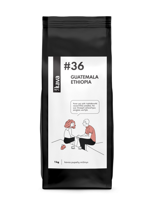 Sastāvdaļas: Grauzdētu Gvatemalas SHB 50% un Ethiopia Yirgacheffe 50% Arabica kafijas pupiņu maisījums.